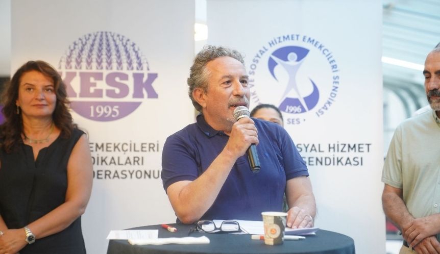 Kamu Emekçileri Sendikaları Konfederasyonu Eş Genel Başkanı Ahmet Karagöz; SES’in ve SES’lilerin onurlu mücadelesini selamladığı konuşmasında kamu emekçilerinin bu dönemde de 29 yıl önceki gibi grevli toplu sözleşme, güvenceli iş, insan onuruna yakışır ücret hakkı için alanlarda olduğunu dile getirdi.