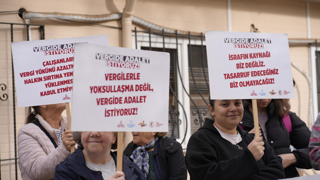 “Vergide Adalet” eylemlerimize hükümet tarafından hiçbir yanıt verilmediği gibi; ücretlerimiz enflasyon karşısında giderek erimekte, satın alım gücümüz düşmekte ve tüm ücretlilerde olduğu gibi maaşlarımızdan yüksek oranda, peşin vergi kesintileri yapılmaktadır.